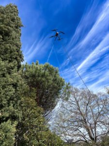 Certifié et équipé, j’interviens avec un drone pour neutraliser les nids de frelons asiatiques situés en hauteur.